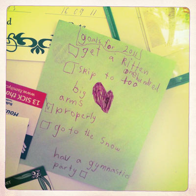 My list was blown out of the water by a house purchase, house sale, house move and job change (husband). I’m still catching my breath, and actually can’t even remember what was on my list for this year, let alone WHERE the piece of paper might actually be.