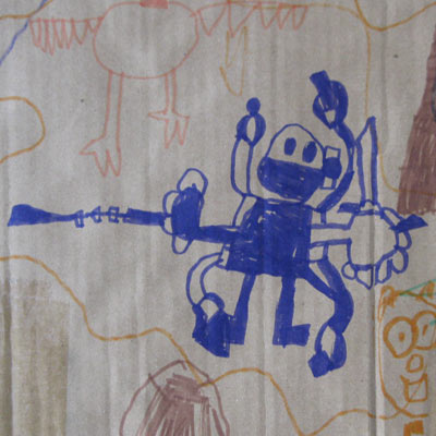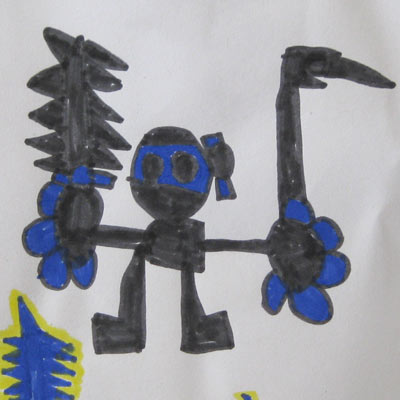 I’m thinking that I should contact the Guiness Book of Records to see if my pet might just qualify for the ‘most prolific use of a texta by a feline’ category. He’s been busy, my cat. Diligently studying the penmanship of Mr Meat&Potatoes, he’s now able to replicate my boy’s ninja drawings with spooky accuracy. They’re everywhere. On the outside of any available cardboard box, littered throughout my ream of office paper and also on the wall right next to Mr M&P’s pillow on his new bunk bed. It’s uncanny.