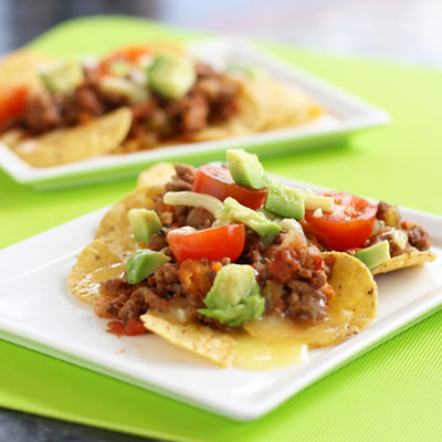 Add a few chips to a plate (don’t give them too many!). Spread over a layer of mince, scatter the tomato and avocado, sprinkle with cheese and microwave until it is hot and the cheese just melted.