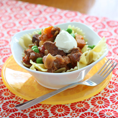 MIx everything together well, reduce the heat and simmer for at least 20 minutes uncovered (you want liquid to evaporate and for this to be a pretty dry mix). If you have time, just let this simmer away for 45 minutes or so, while you repack lunches, solve homework problems or plow through the day’s family admin. Do give it all a stir every now and again to avoid sticking.