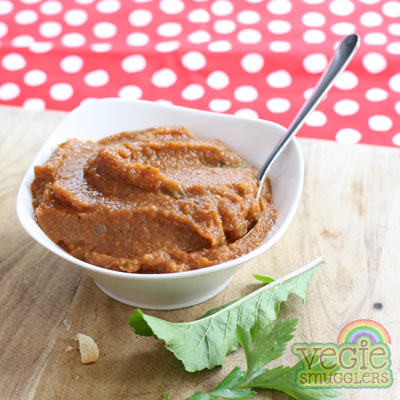 Generally a vegie-smuggling theory of mine has been that too much repetition in a kitchen or on a weekly menu is a bad thing. Dealing with fussy kids is hard enough without adding an extra layer of “but it’s Tuesday – we always eat bolognaise on Tuesdays”. Too much predictability will make conquering bad food habits particularly tricky. So I like to mix it up and keep the kids used to coming to the dinner table with an open mind. “What’s this?” they’ll ask. I’ll tell them and they’ll shrug an “ok”, all the while giving it a sniff and checking out the colours.