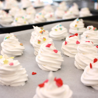 Dollop amounts onto trays (they don’t spread, so load them up). Bake for 45 minutes. Turn off the heat, open the oven door slightly and leave them to cool completely.